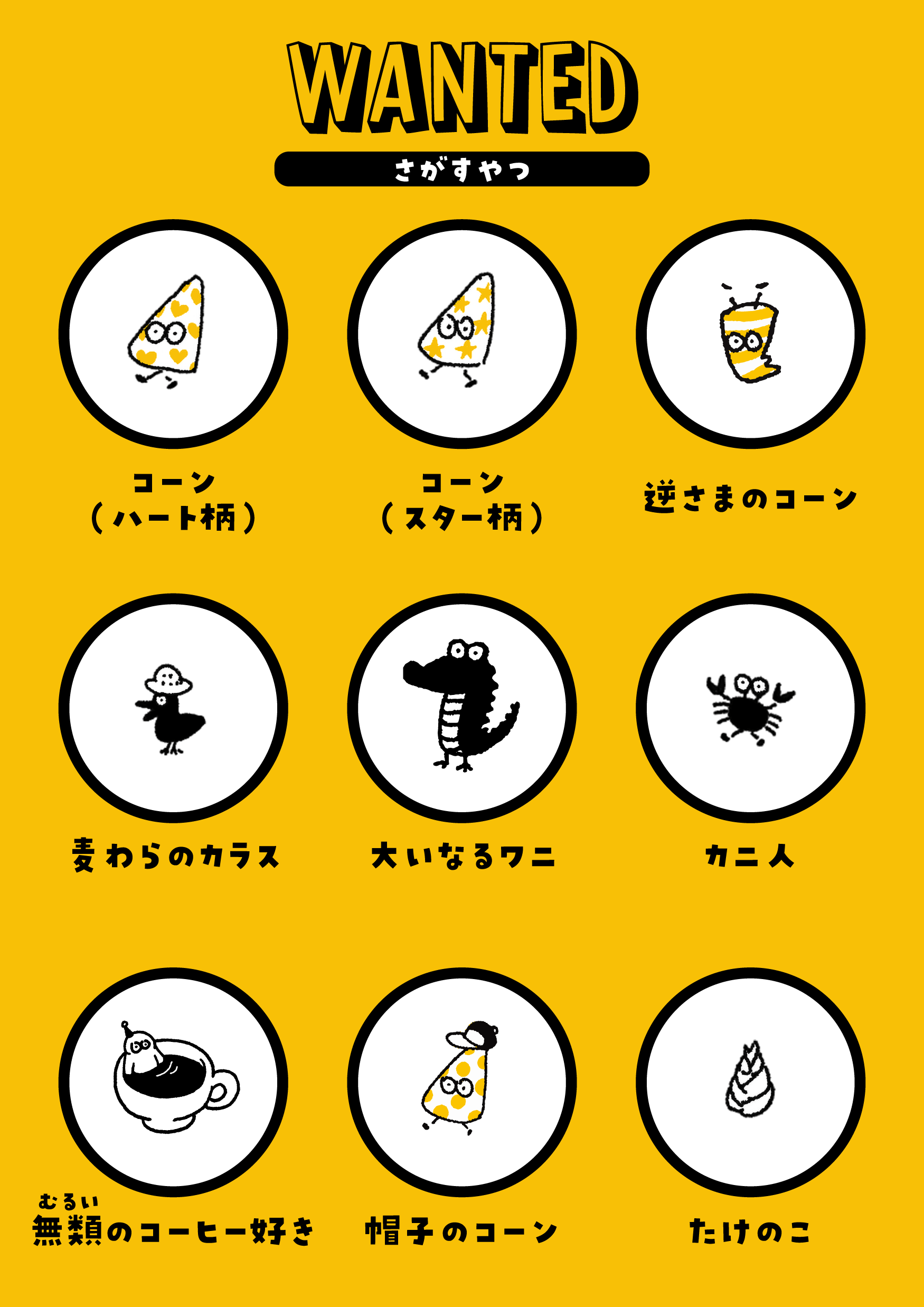 Wanted No.2 『Happy Spring!』 『Happy Spring!』 春がきた! 春になればたくさんの花が咲く。 花が咲けば心がおどる。 みんな、いつもよりにぎやかでモジョモジョしているようだ。 ・・・・・ 見つけられたかな?